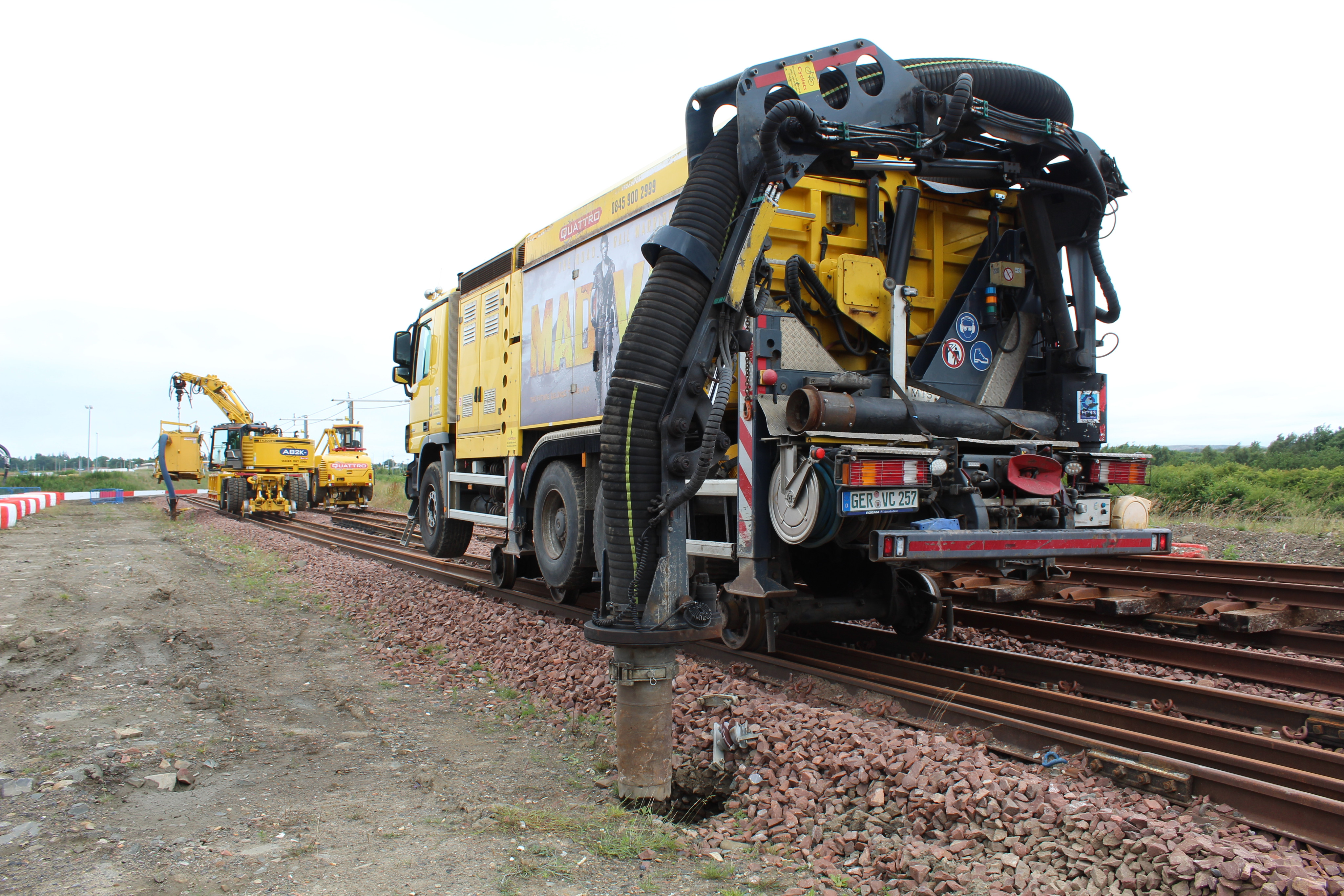 Visitors to the opening day were impressed by the rail training area, situated at the back of the the vast site closest to the M8, as they walked alongside the length of Scotland’s longest twin rail tracks with real overheads. Various road-rail vehicles were parked along each 150 metre track, including one of the company’s brand new MEWPs and two road-rail excavators, as well as one of the aforementioned monumental Mad Vax RRVs.