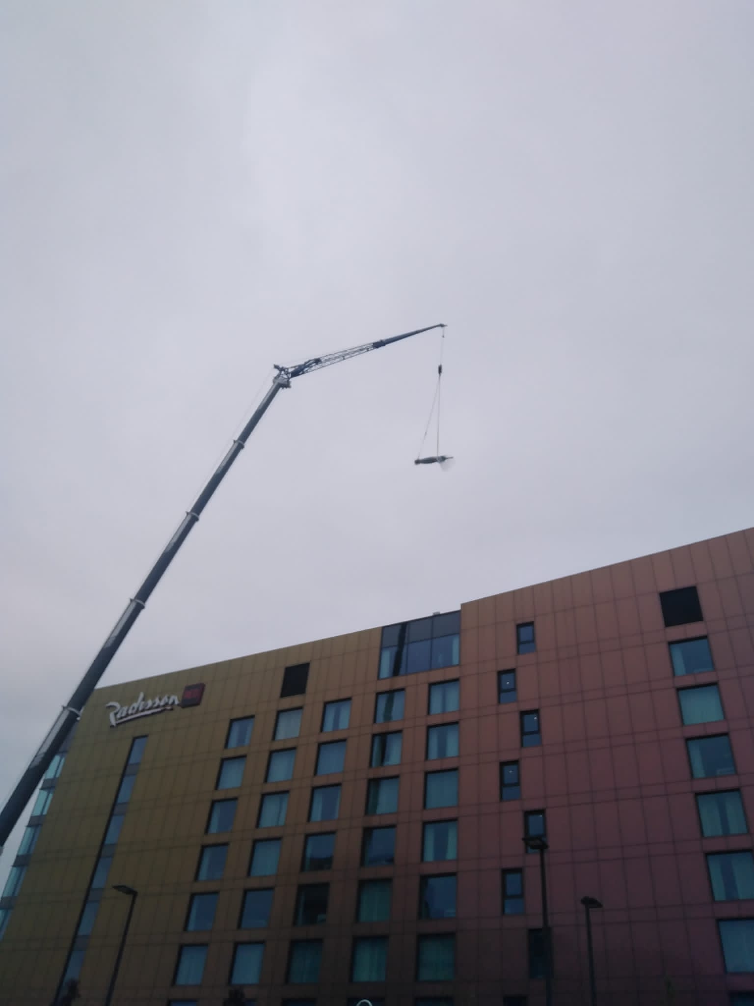 The stylish sky bar in Glasgow is well worth a visit boasting incredible panoramic views over the River Clyde, Squinty Bridge and Finnieston Crane. But what happens next? An excuse to visit for an off-duty cocktail under the new parasol! We're here for the heavy lifting, whatever the weather.